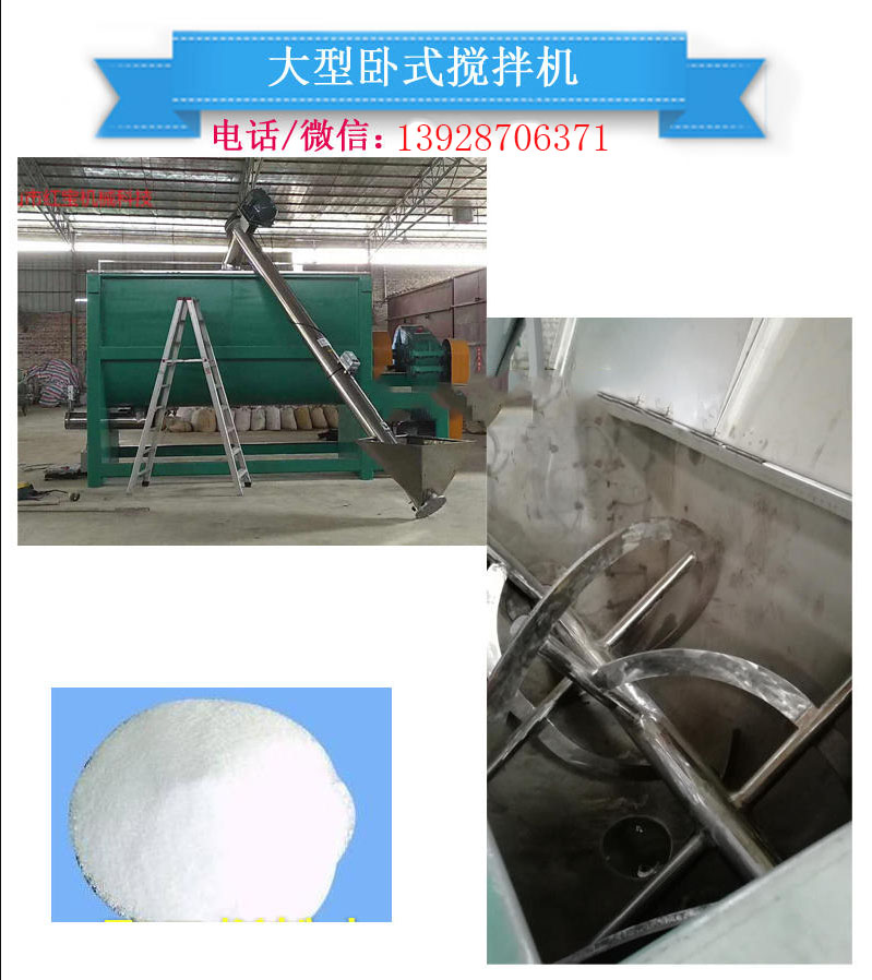 佛山市紅寶機械專業(yè)生產(chǎn)訂制各種型號臥式螺帶干粉攪拌機,與物料接觸面為201不銹鋼,也可按要求訂制304或316不銹鋼等,型號可選,也可以帶物料來公司免費試機。銷售熱線:13928706371微信同號。